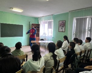 --В рамках плана работы по патриотическому воспитанию в МКОУ «Костюбинская ООШ» была организована и проведена встреча с председателем Володарского районного совета ветеранов войны, труда, вооруженных сил и правоохранительных органов Искендировой Р. С., заместителем начальника по воспитательной работе УЦ ДОСААФ России Джамаледеновым А. Г., преподавателем УЦ ДОСААФ Павловым А.В., специалистом учебной части Неталиевой З.Б. Они рассказали учащимся о значимости военной службы, патриотизме, долге и чести, выборе будущей профессии. Павлов Андрей Владимирович, участник СВО, рассказал ребятам об экипировке современного воина, приемах пользования противогазом, оказания первой медицинской помощи, сборки и разборки автомата